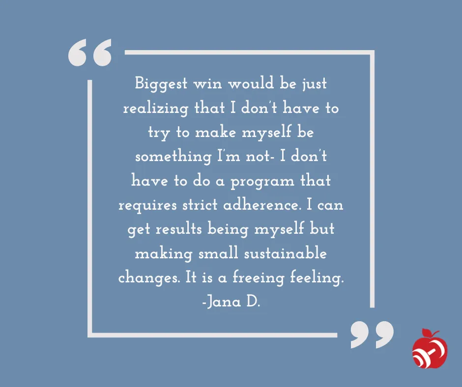 And because of my personal experiences, I know that what works for women in midlife is not another diet or plan, but a sustainable healthy lifestyle that can be achieved by implementing a few simple habits consistently. I've seen how often women start to get the results they're looking for when they stop looking at the scale and start changing their habits!